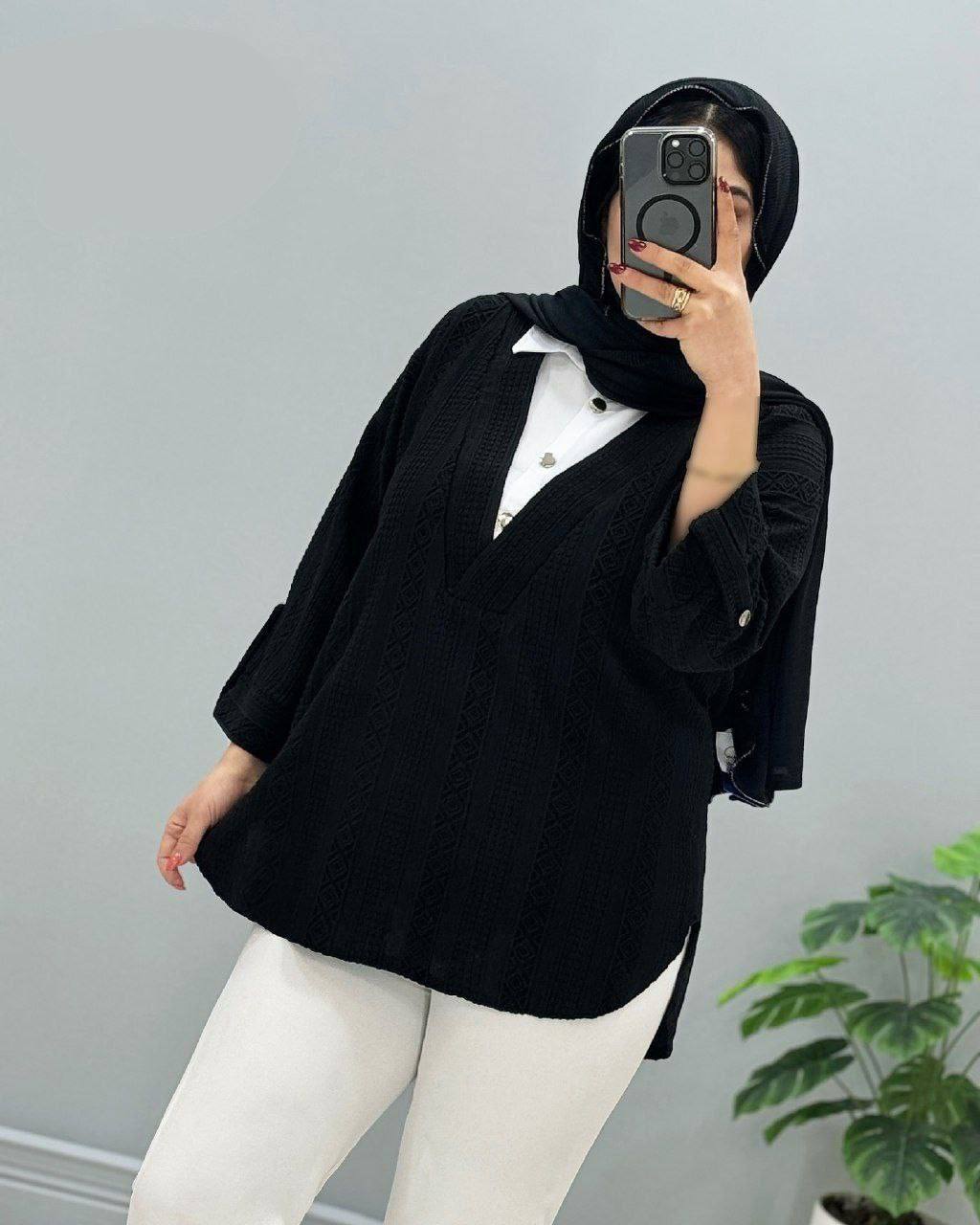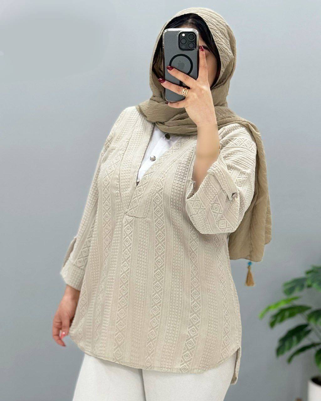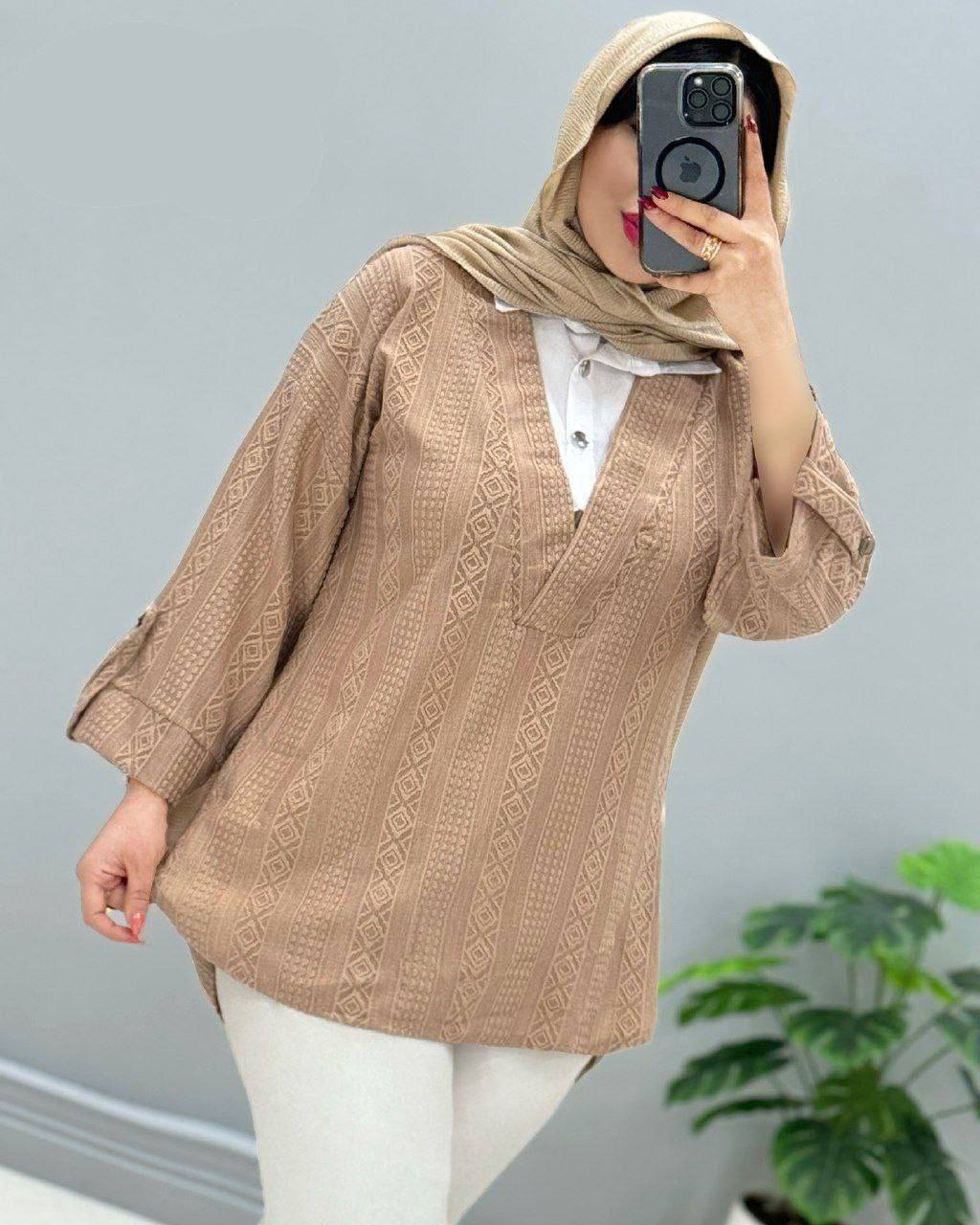 تونیک مانتویی ترکیبی یقه دار (پک 5 عددی)