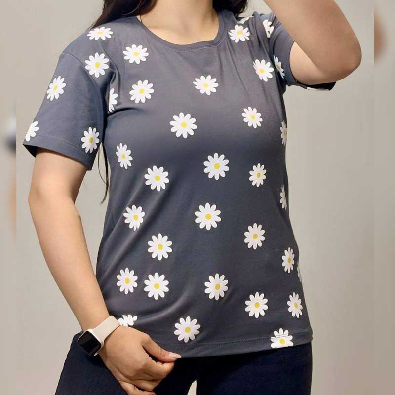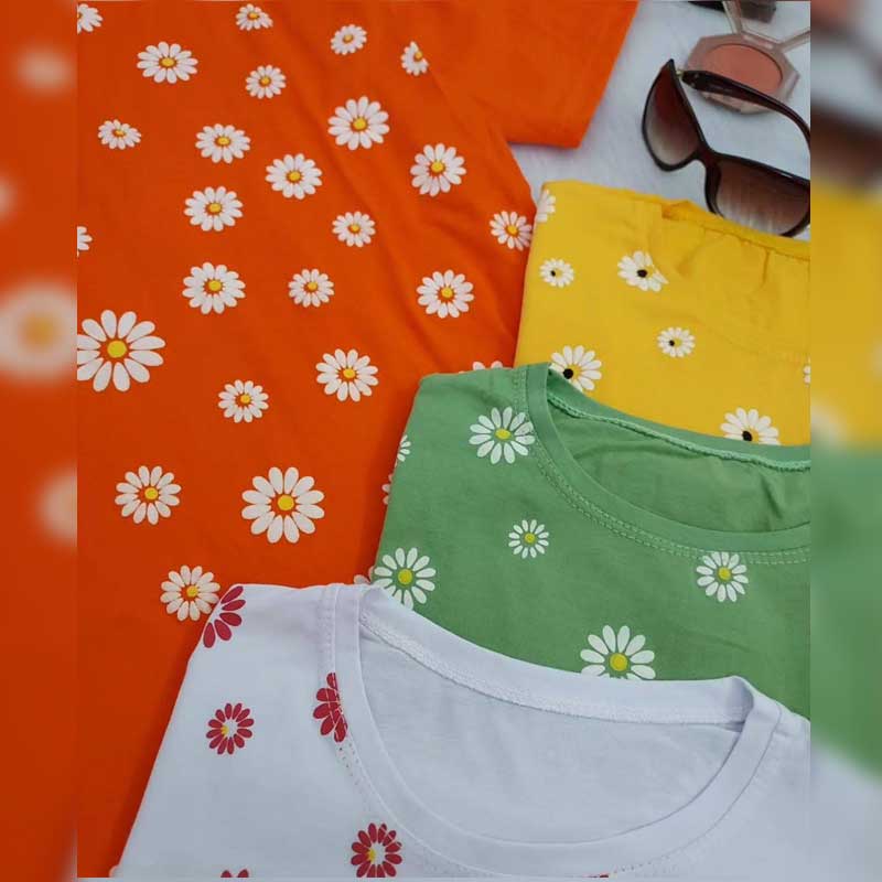 تیشرت نیم آستین چاپ بابونه (پک 6 عددی)
