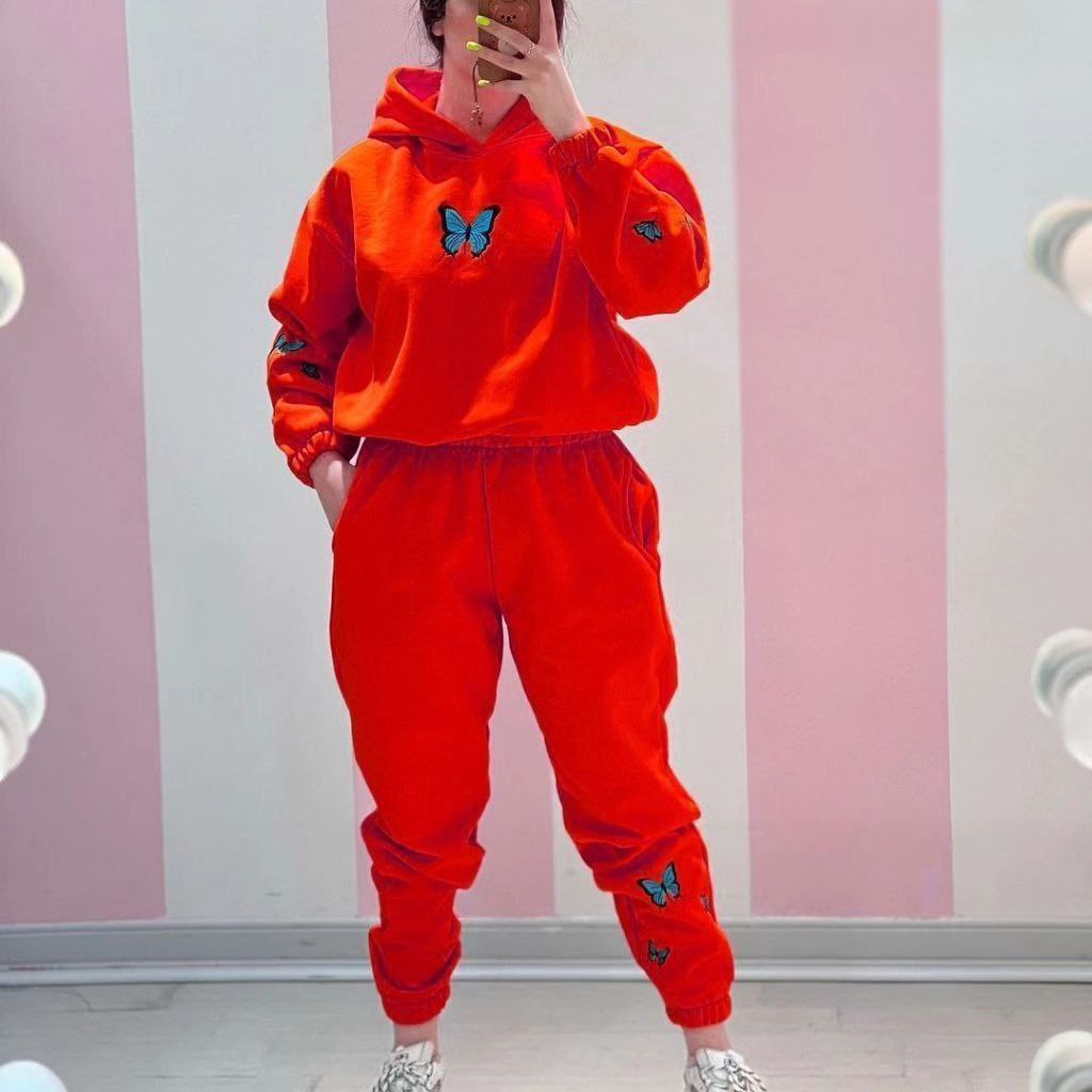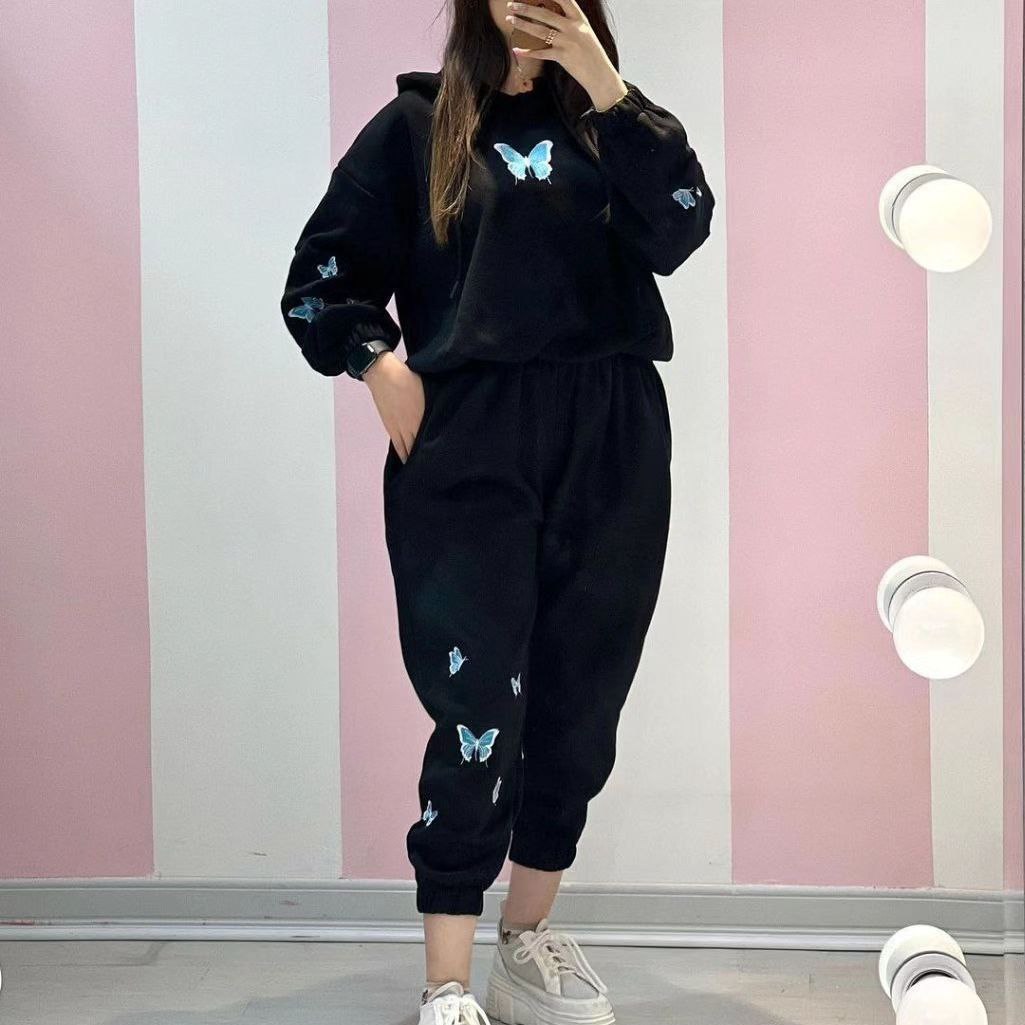 ست کراپ هودی شلوار چاپ پروانه (پک 5 عددی)